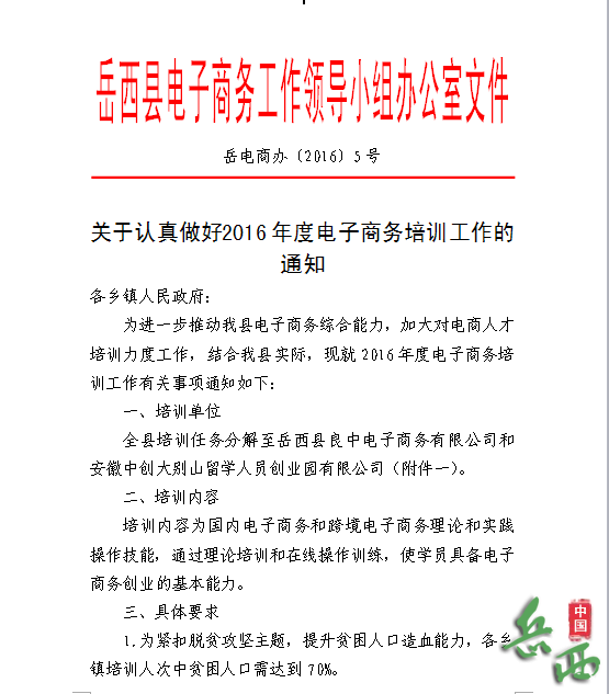 关于印发岳西县促进电子商务产业发展扶持政策的通知