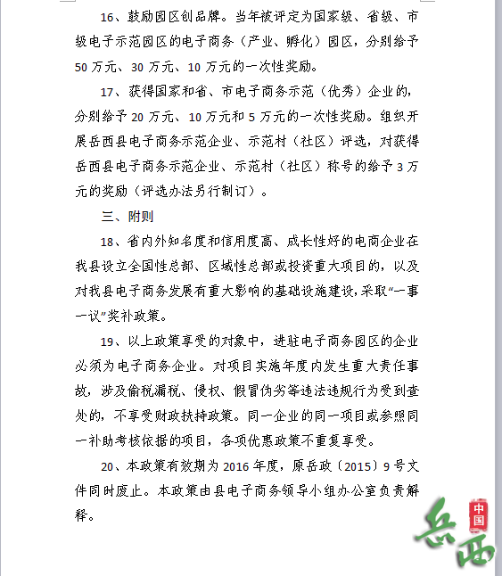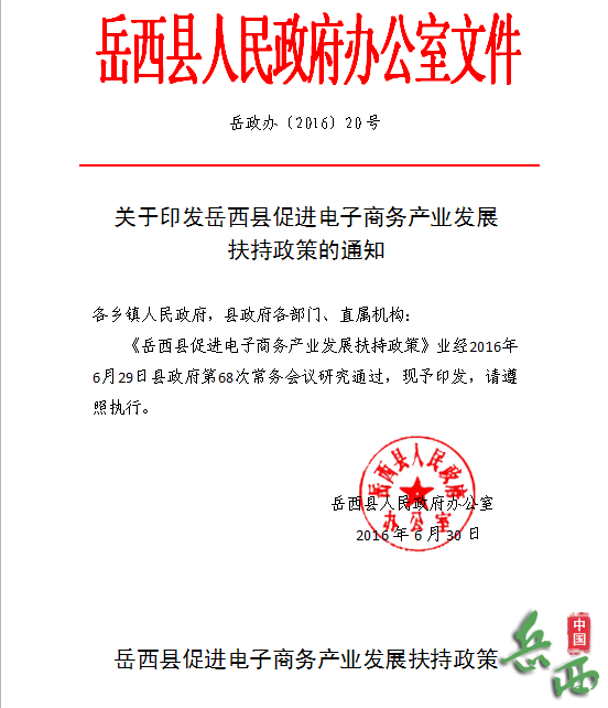 关于印发岳西县促进电子商务产业发展扶持政策的通知