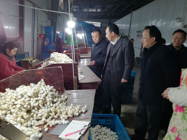 元月18日,市农委副主任李林生带领市农委“四送一服”(送新发展理念、送支持政策、送创新项目、送生产要素、服务企业)工作组来到安徽联丰制丝有限公司调研。县农委党组成员、纪检组长胡合庆陪同调研。
