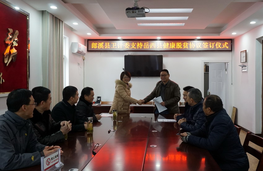 医疗专家团队与岳西县卫计委签订了健康脱贫支援协议书。郎溪县卫计委表示将尽全力支持岳西健康扶贫工作,为安徽省健康脱贫工程贡献一份力量。(李凤霞)