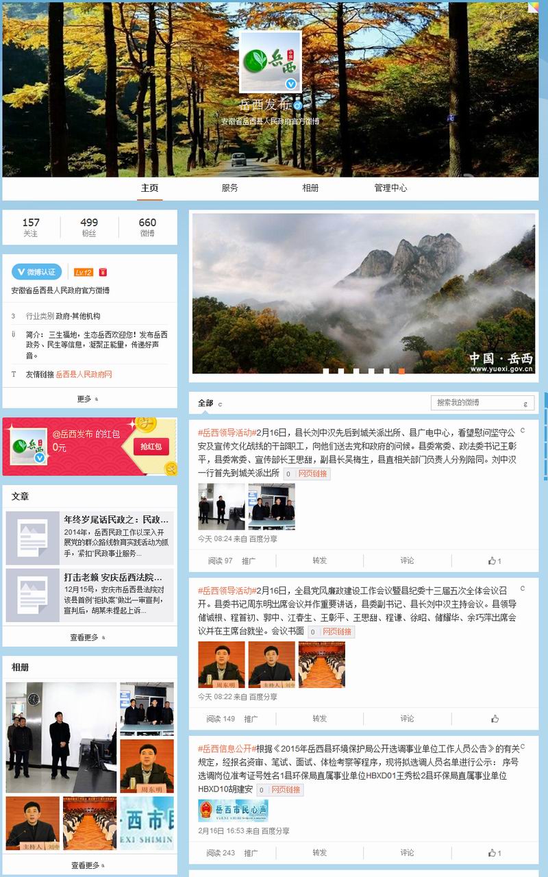 岳西县政府网官方微博“岳西发布”,微博地址:http://weibo.com/u/2805806464,